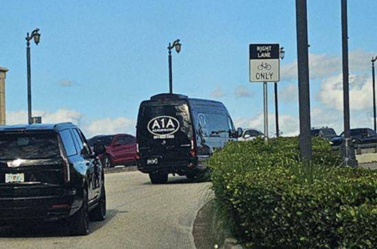 当地时间10月18日,在佛罗里达州特朗普国际高尔夫俱乐部一带,疑似软银CEO孙正义乘坐的黑色豪华巴士驶向棕榈滩。图源:韩媒