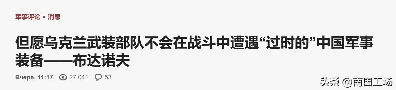 当地时间2025年10月20日,俄罗斯方面称,乌克兰国防部下属的情报总局局长,基里尔·布达诺夫少将表示,乌克兰军队不希望在实战中,遇到被许多人认为,“过时”的中国军事装备。当时,布达诺夫少将接受乌克兰记者采访,记者提问,他是否认为,中国在93阅兵式上,展出的军事装备已经过时。这位乌克兰国防部下属的情报总局局长回应称,中国展出的所有武器装备都相当先进,但愿乌克兰军队在实战中不会遇到这样的装备。