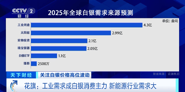 此外,根据花旗集团的预测:预计今年工业用途会成为白银需求的最大来源,预计将达到4.3亿盎司。其中,太阳能行业的需求被单独列出,大约为2.99亿盎司,体现出可再生能源领域正在成为白银需求增长的重要驱动力。其他需求,还有实物投资和珠宝银器等等。