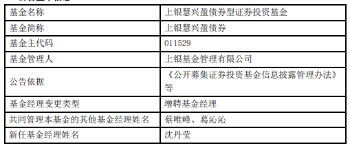 中国经济网北京10月20日讯 今日,上银基金公告,上银慧兴盈债券增聘沈丹莹。