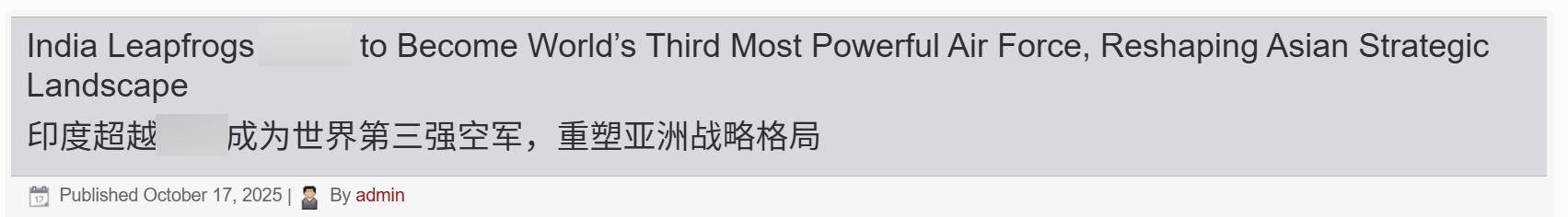谁都知道中印空中力量对比差距很大,印度依旧抱着“高人一等”的思想。印度媒体《印度国防研究》在2025年10月17日刊文,标题就是“印度超越中国成世界第三强空军,重塑亚洲战略格局”,仅看标题就让人惊叹,这是真敢说啊!