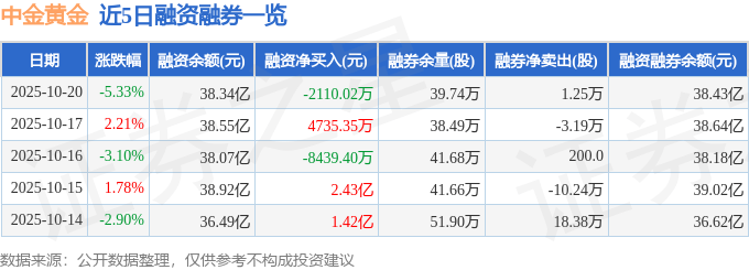 证券之星消息,截至2025年10月20日收盘,中金黄金(600489)报收于23.63元,下跌5.33%,换手率2.76%,成交量133.9万手,成交额31.95亿元。