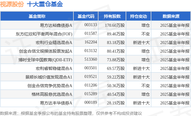 重仓视源股份的前十大公募基金请见下表: