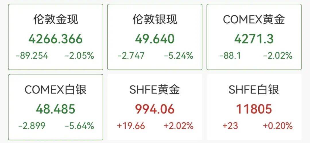 10月21日|沪金期货主力合约跌近3.5%,沪银期货主力合约跌近4...