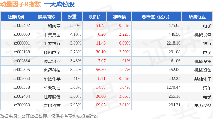 证券之星消息,10月21日,动量因子R(480057)指数报收于2744.45点,涨1.72%,成交402.55亿元,换手率1.79%。当日该指数成份股中,上涨的有46家,瑞达期货以9.98%的涨幅领涨,下跌的有3家,新和成以0.3%的跌幅领跌。