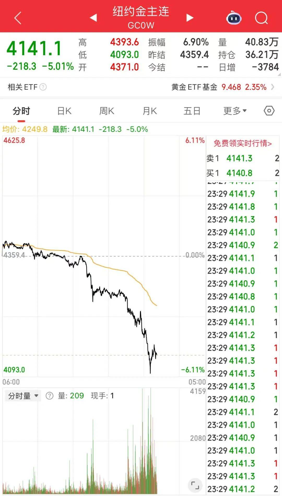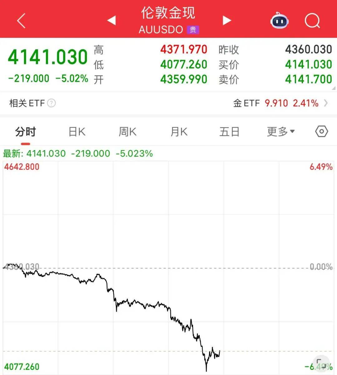 现货黄金重返4100美元关口上... 现货黄金短线反弹,重返4100美元关口上方,日内跌幅收窄至0.5%,此前一度下行逼近4000美元关口...