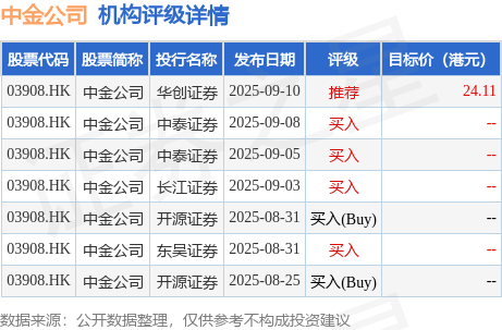 截至2025年10月21日收盘,中金公司(03908.HK)报收于21.76港元,上涨3.03%,成交量3955.28万股,成交额8.72亿港元。投行对该股的评级以买入为主,近90天内共有4家投行给出买入评级,近90天的目标均价为24.11港元。华创证券最新一份研报给予中金公司推荐评级,目标价24.11港元。