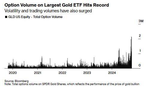 最大规模黄金交易所交易基金的期权成交量创下新高