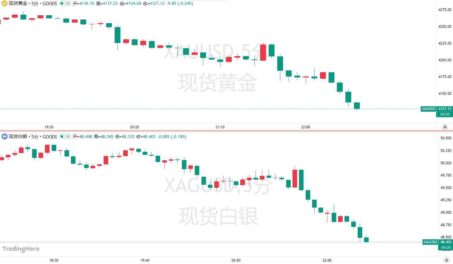 在周一将历史新高刷新至4380美元上方后,现货黄金周二盘中大跌超5%,并失守4130美元,日内大跌超200美元;白银日内更是暴跌超7%。