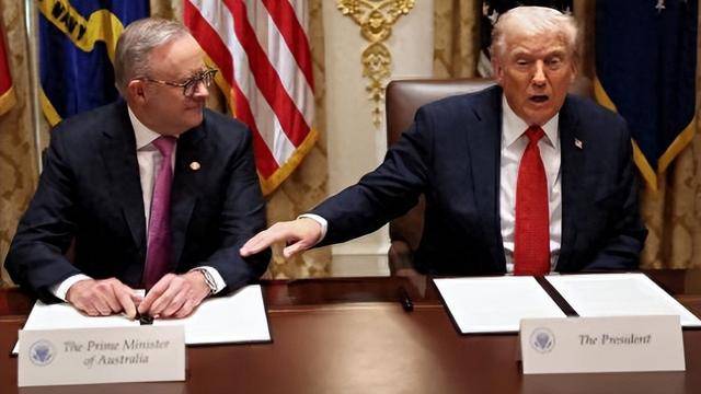 澳大利亚方面对关键矿产协议反应积极。当地媒体强调,这是两国在资源安全领域的突破。白宫官方发布的照片中,特朗普与阿尔巴尼斯在签字桌前并肩站立,背景屏幕显示“85亿美元合作框架”。