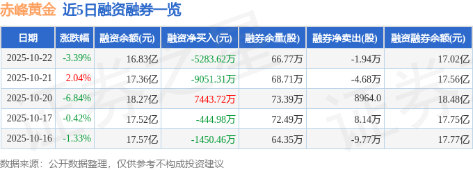 赤峰黄金融资融券信息显示,融资方面,当日融资买入1.73亿元,融资偿还2.25亿元,融资净偿还5283.62万元。融券方面,融券卖出7.85万股,融券偿还9.79万股,融券余量66.77万股,融券余额1900.94万元。融资融券余额17.02亿元。