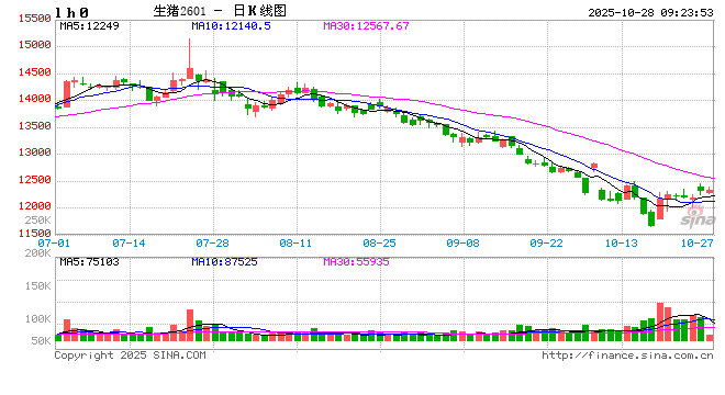 周一,生猪主力2601合约跳空上行,期价延续偏强表现。现货市场,产销区生猪报价偏强运行。目前,黑龙江市场生猪主流成交价格12.32元/公斤,较昨日价格上涨0.27元/公斤;吉林市场主流成交价格12.36元/公斤,较昨日价格上涨0.37元/公斤 ;辽宁地区生猪出栏主流价格12.41元/公斤,较昨日价格上涨0.39元/公斤;内蒙古市场主流成交价格为12.34元/公斤,较昨日价格上涨0.41元/公斤。东北地区周末二育积极,成交较好,散户压栏增重意愿较强,中大猪供应偏紧,今日市场价格小幅上扬,低价12.6元/公斤,高价13.2元/公斤,较昨日上涨0.2元/公斤,标肥价差继续走扩。整体来看,10月中旬猪价企稳,标肥价差拉大,东北育肥积极性增加,节流了现货市场中部分销售额度,猪价获得支撑。上周五,农业农村部发布供需形势分析会,会中表示,猪肉进口下降、消费增加,预计生猪及猪肉价格四季度止跌回升。政策端,继续关注政策调控对生猪市场供需及情绪的影响。