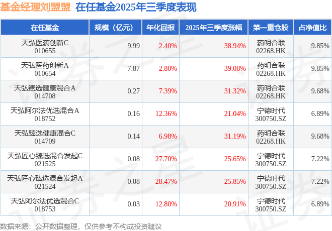 证券之星消息,截止2025年三季度末,基金经理刘盟盟旗下共管理8只基金,本季度表现最佳的为天弘医药创新A(010654),季度净值涨39.08%。