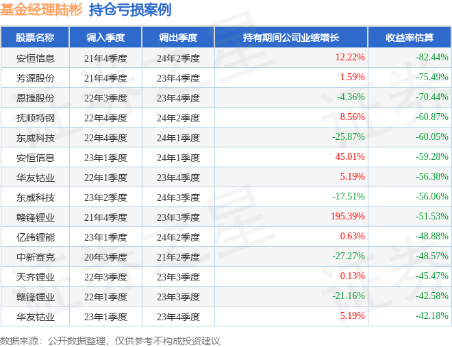 陆彬管理的汇丰晋信智造先锋股票A基金在21年4季度买入安恒信息,在持有2年又2个季度后在24年2季度卖出。持有期间的估算收益率为-82.44%,持有期间安恒信息在2021年到2024年的年报营业总收入增幅达12.22%。
