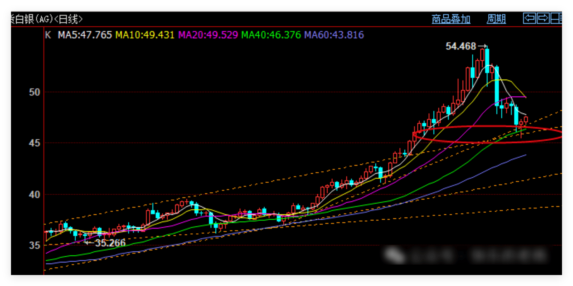 国际白银,日白银空头继续发力,直接跌向我们指出的中期支撑后于45.5附近止跌企稳并成功反弹,日线以锤子线收盘。白银短期止跌信号明显,昨日强调的抵达取件后买多,基本在最低点;今日有美联储消息,建议47.5以上减仓,提损昨日低点。