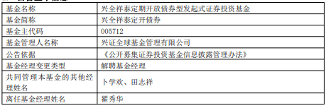 中国经济网北京10月29日讯 今日,兴证全球基金公告,翟秀华离任兴全祥泰定开债券。