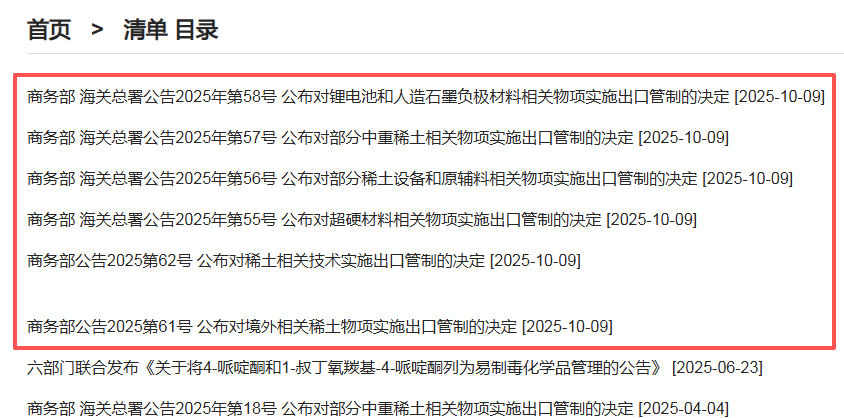 比如,国庆节后中国商务部和海关总署发布了多则与稀土出口管制有关的公告,针对的是9月底、10月初美国BIS新搞出来的实体清单穿透性规则,即被原本已在实体清单内的企业持股50%以上的实体,便自动纳入实体清单、“享受”和母公司一样的制裁。顺便提一句,这条规则是安世半导体被荷兰“夺权”事件的重要导火索。
