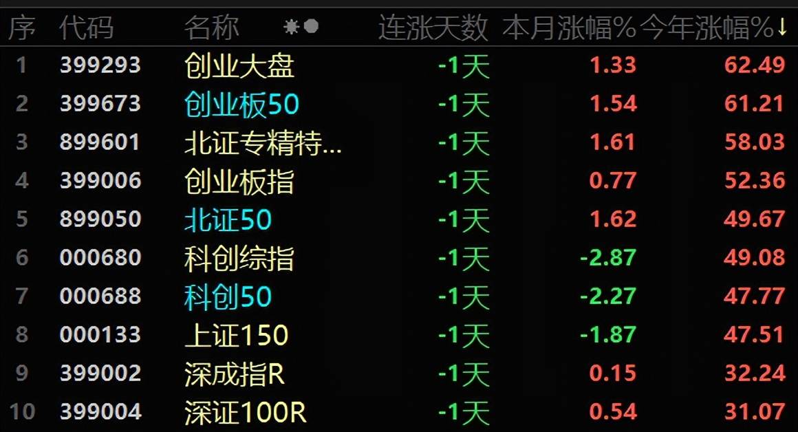 上述指数中,除了2只北证,双创指数达到5只,占据半壁江山。