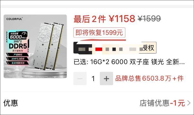“当时509元买的,现在叠加双十一活动后还要1158元,涨得比黄金还疯狂。”一位消费者晒出了7月份入手的DDR5内存条,庆幸“躲过一劫”。这并非个例。在社交媒体上,随着价格的暴涨,“囤内存”成了热门话题。
