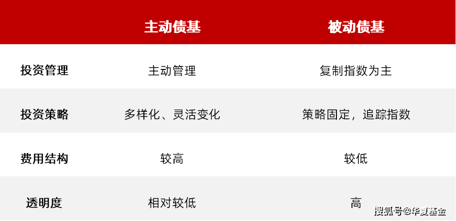 与主动型债基相比,被动指数型债基产品贯彻稳定且明确的投资策略,根据标的指数情况进行定期调整,受基金经理的影响较小,同时在费率上相较主动债基更低。