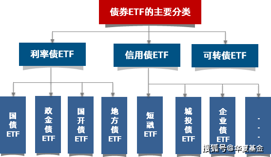目前国内已上市的债券ETF按种类可划分为国债ETF、政金债ETF、国开债ETF、地方债ETF、城投债ETF、可转债ETF、短融ETF、公司债ETF等等。
