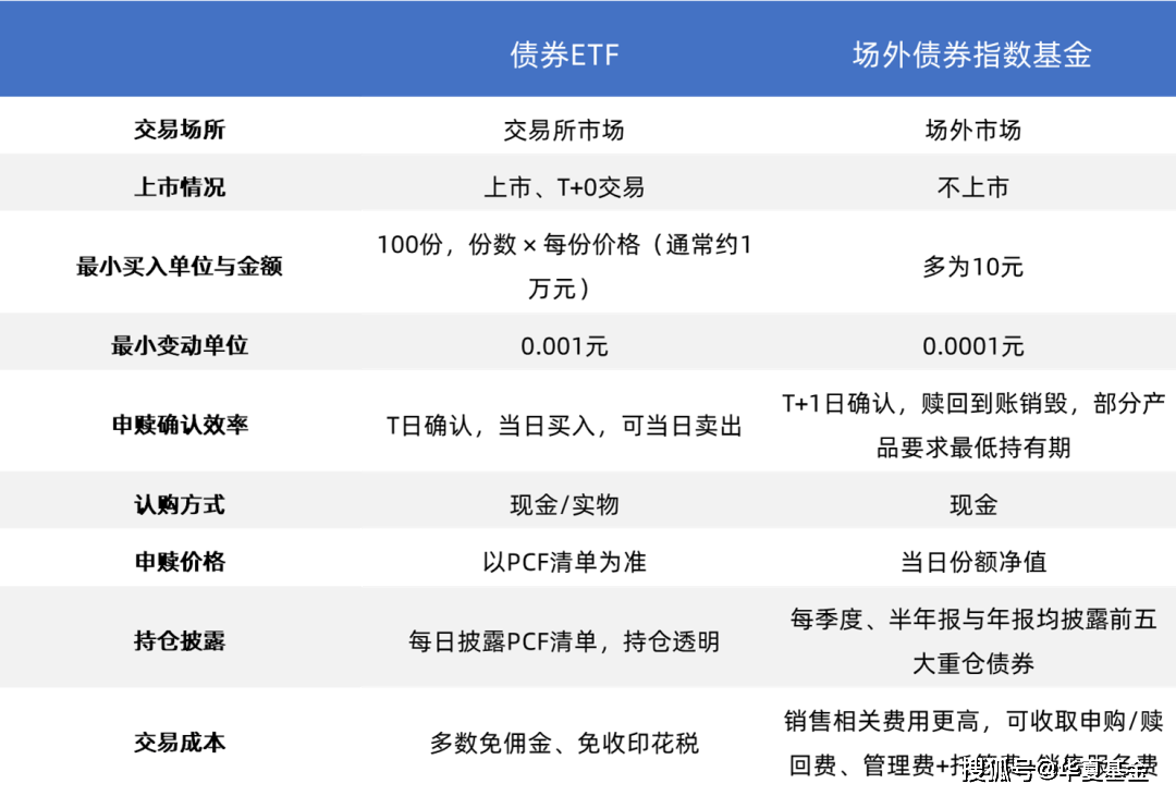 从产品分类看,我国债券市场分为银行间和交易所两个市场,因此具体到债券指数化投资中,也有两套体系并行,即场外债券指数基金和交易所债券ETF。