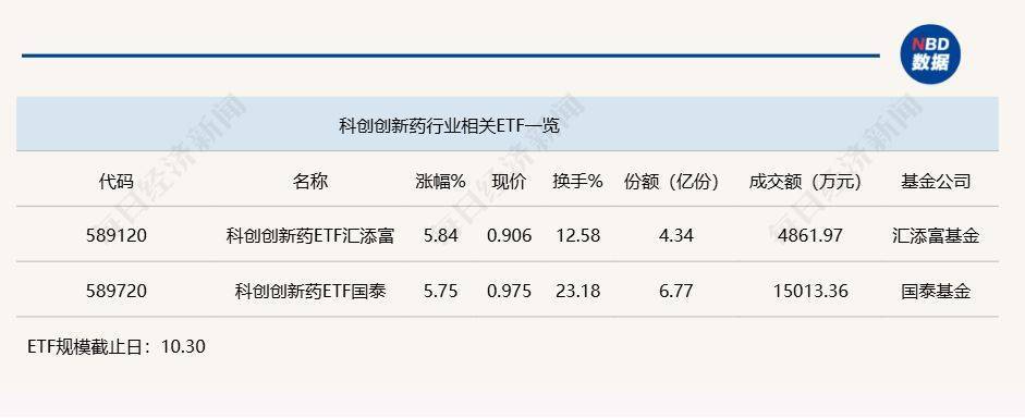 点评:科创创新药ETF汇添富(589120)和科创创新药ETF国泰(589720)今日上午分别上涨5.84%和5.74%,其中,科创创新药ETF国泰(589720)规模相对较大,其份额为6.77亿份,半日成交金额达到1.5亿元。