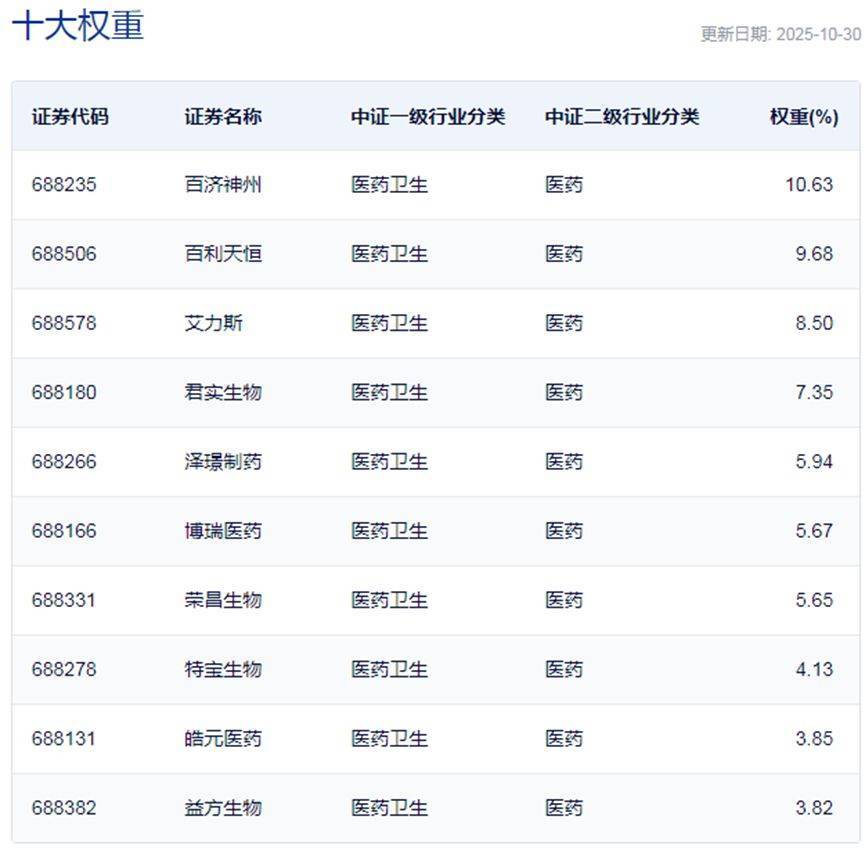 上证科创板创新药指数从科创板中精选30只业务涉及创新药的头部公司。指数权重分布相对分散,有效避免了个股风险过度集中的问题,同时能更好地捕捉不同阶段创新药企业的成长周期。
