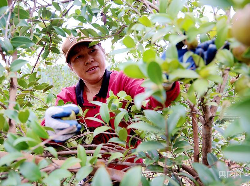 茶农在采摘油茶果(央广网发 欧阳林 摄)