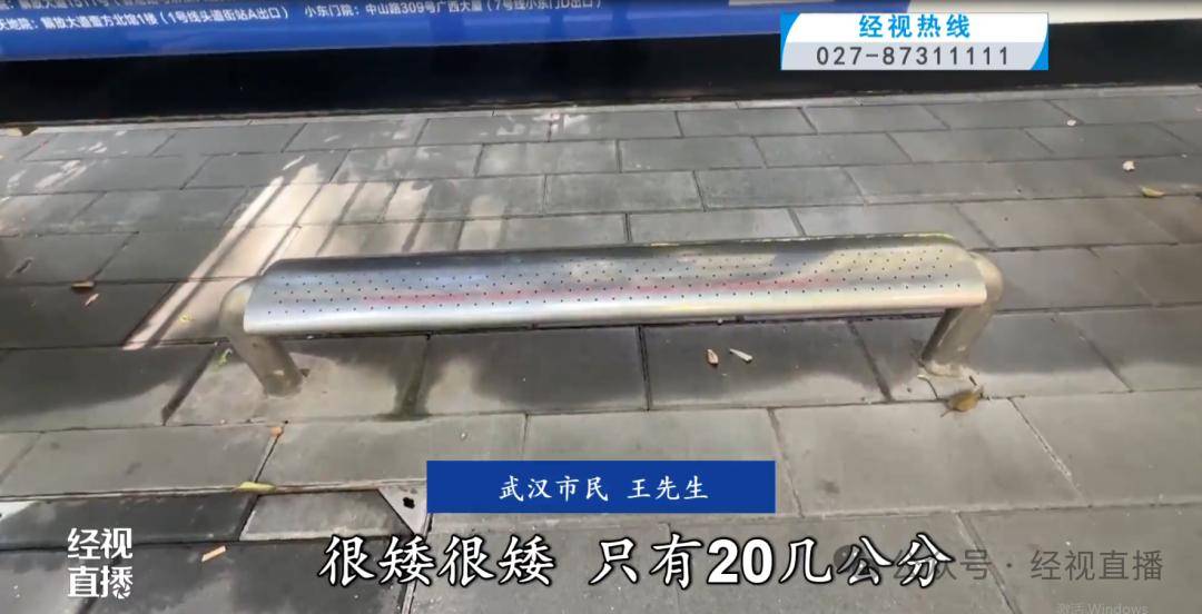 公交站的候车座椅虽然看似不起眼,但对候车市民来说,关键时刻还是很能派上用场的。然而,近日有市民向经视直播反映,武汉市江岸区一公交车站的候车座椅“很矮很矮,只有二十几公分”!