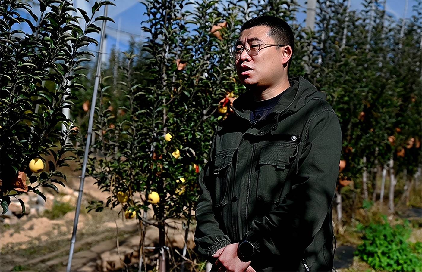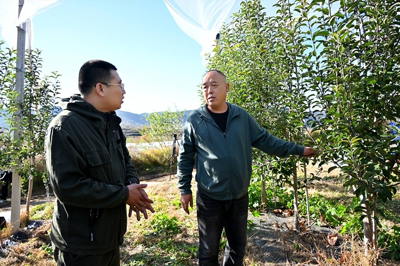 盂县孙家庄镇千亩苹果现代产业园负责人侯宝明(右)