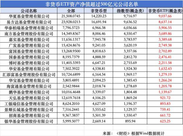 在中大型公募基金中,兴证全球基金在9月下旬上报了首只ETF产品,中欧基金则未踏足ETF领域,建信基金、中银基金的ETF规模不足百亿。