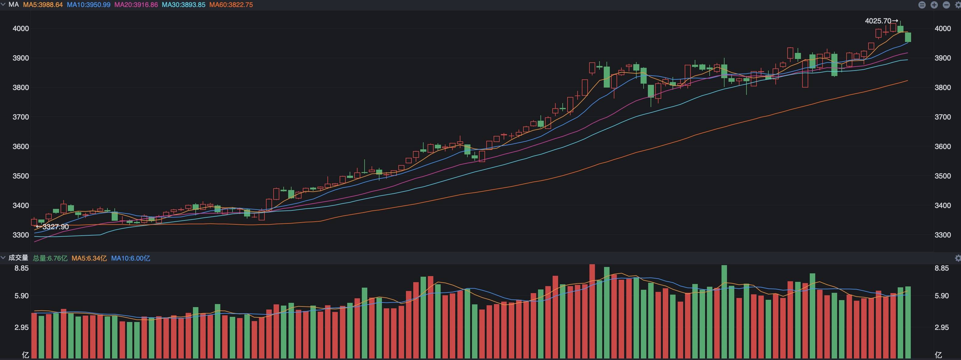 当然,这种声音与市场重要力量对盘面的维护是分不开的,其实这波指数在3900点附近就已经出现了乏力的状态,然而大家看到的情况是,有一股强大的力量在始终托着市场向上,最终感觉有点强行上了4000点的情形。