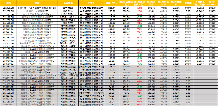 继续关注今年债市调整以来平安公司债ETF(511030)回撤控制排名第一,净值相对稳健且回撤可控,近1周平均贴水仅2BP,可参考下表:
