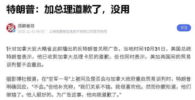 此次借广告发难,更像是特朗普的 “借题发挥”, 毕竟用盟友开刀,既能震慑其他贸易伙伴,又能巩固自己的保护主义形象,可谓一箭双雕。