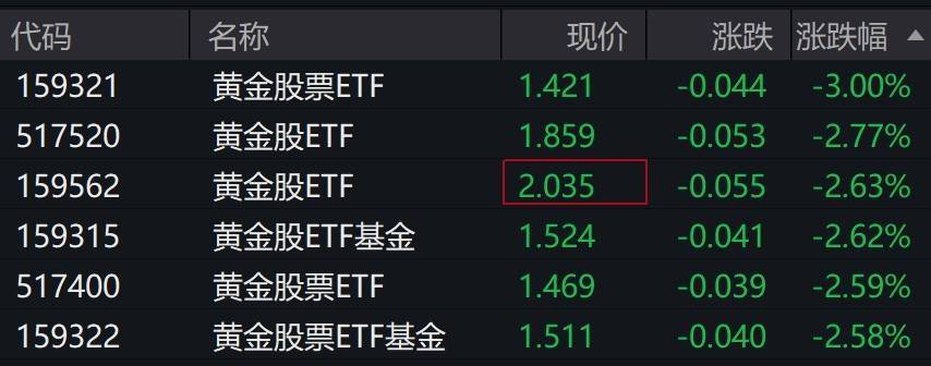 黄金股早盘走低,山东黄金、中金黄金、招金矿业、赤峰黄金、紫金矿业等跌超3%。
