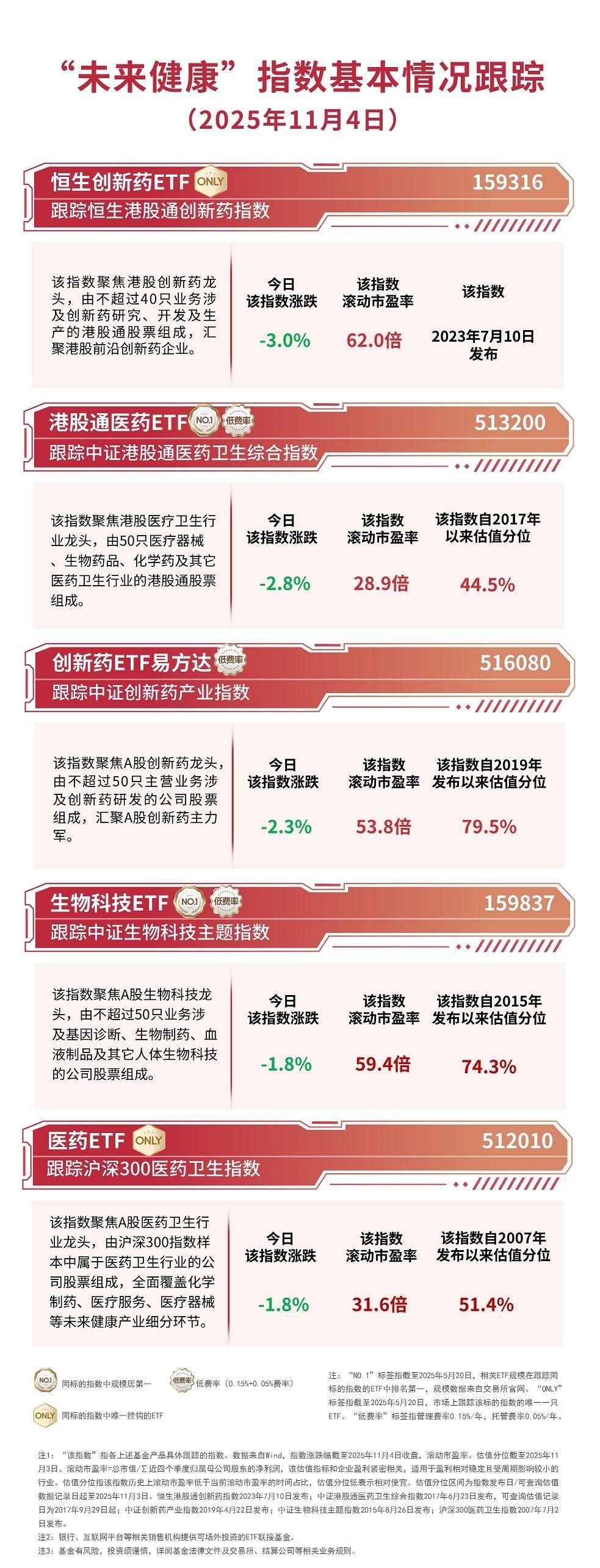 截至收盘,恒生港股通创新药指数下跌3.0%,中证港股通医药卫生综合指数下跌2.8%,中证创新药产业指数下跌2.3%,中证生物科技主题指数、沪深300医药卫生指数均下跌1.8%,资金逆势加仓,恒生创新药ETF(159316)和生物科技ETF(159837)全天净申购分别达4400万份和4000万份。
