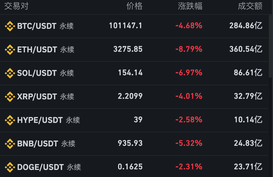 比特币再次回落至100000美元/枚下方,以太坊向下触及3200美...