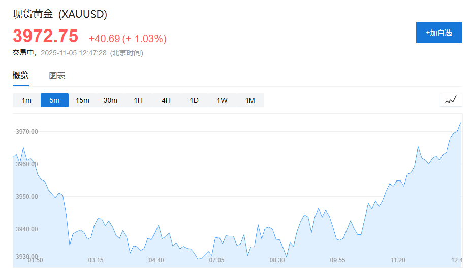 现货黄金涨超1%,报3971美元。现货白银涨1.3%,报47.75美元。