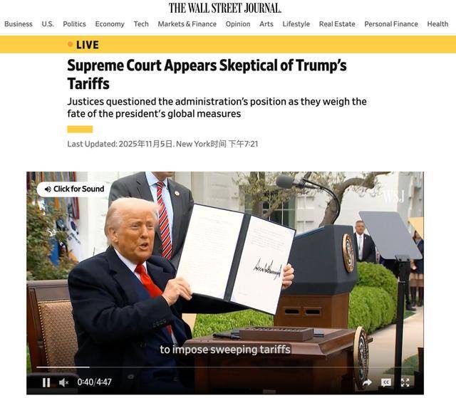 辩论结束后,美国各大主流媒体在标题和报道中几乎清一色使用了“怀疑”“质疑”“忧虑”等词语为辩论定调,传达出大法官们在法律文本与历史层面普遍质疑将《国际紧急经济权力法》(International Emergency Economic Powers Act,简称 IEEPA)解读为普遍关税授权的可行性,但同时也提示,结论仍未落槌。