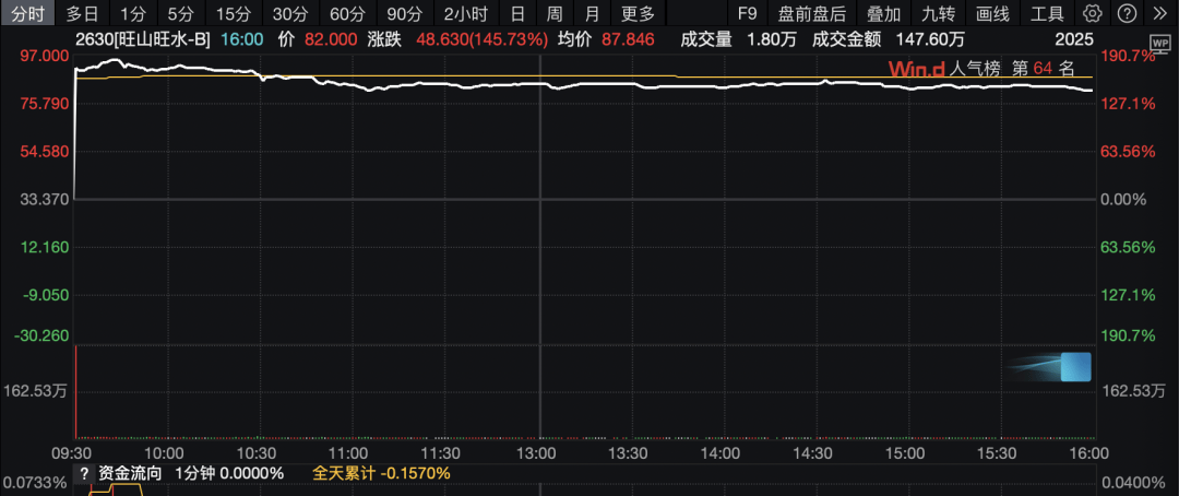 新股旺山旺水上市首日大涨145.73%