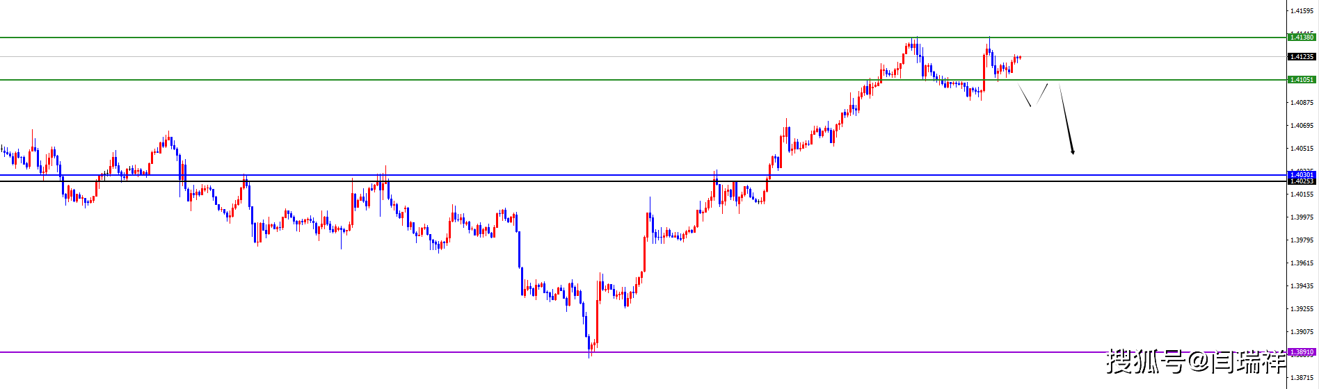 关键分水岭1.4105区域,价格跌破此位置后再看承压