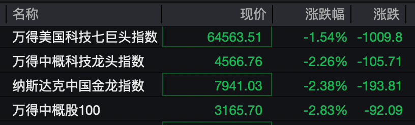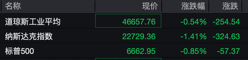 受此影响,美股集体低开,截至发稿,纳斯达克指数跌幅扩大至1.41%。