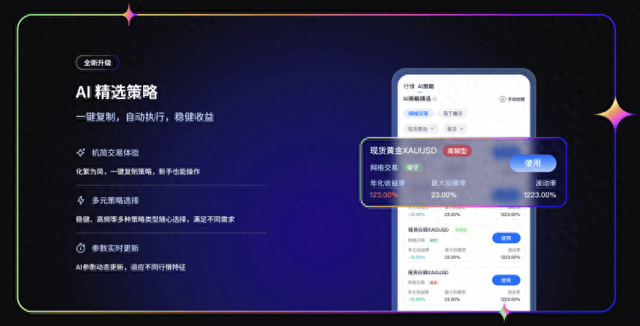 建议:初试者可从“AI精选策略”入手,使用小资金试运行,熟悉机制后再手动配置参数。
