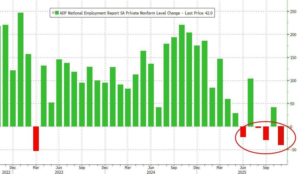 多家知名企业近期宣布的大规模裁员计划引发市场对劳动力市场加速恶化的担忧,而今日最新发布的“小非农”ADP周度就业报告印证了这一恐惧。