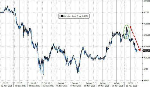 这一全球最大的加密货币周一一度短暂突破107,000美元,但很快回落至105,000美元下方。这一乏力的价格表现,与因美国政府重新开放而上涨的股市和信贷市场形成鲜明对比,表明加密资产的内部动能依然不足。