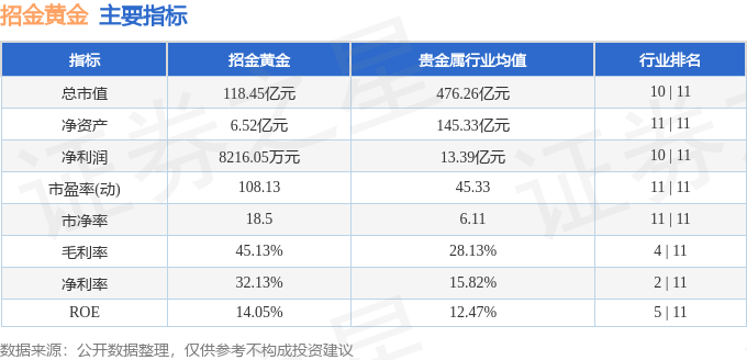 招金黄金2025年三季报显示,前三季度公司主营收入3.4亿元,同比上升119.51%;归母净利润8216.05万元,同比上升191.2%;扣非净利润5072.96万元,同比上升166.77%;其中2025年第三季度,公司单季度主营收入1.44亿元,同比上升157.0%;单季度归母净利润3746.59万元,同比上升206.58%;单季度扣非净利润3718.04万元,同比上升250.5%;负债率54.54%,投资收益3160.73万元,财务费用2518.92万元,毛利率45.13%。招金黄金(000506)主营业务:以黄金为主要品种的矿业开采与房地产开发建设、销售及自有房产的出租。