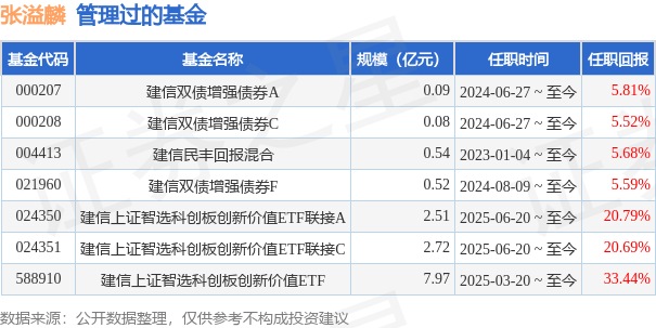 张溢麟先生:中国国籍,硕士。2016年5月毕业于美国芝加哥大学统计专业,同年9月加入建信基金,历任金融工程及指数投资部助理研究员、研究员、基金经理助理兼研究员、投资经理等职务。2023年1月4日起任建信民丰回报定期开放混合型证券投资基金的基金经理;2024年6月27日起任建信双债增强债券型证券投资基金的基金经理;2025年3月20日起任建信上证智选科创板创新价值交易型开放式指数证券投资基金的基金经理。2025年9月30日起担任建信中证A股指数增强型发起式证券投资基金基金经理。