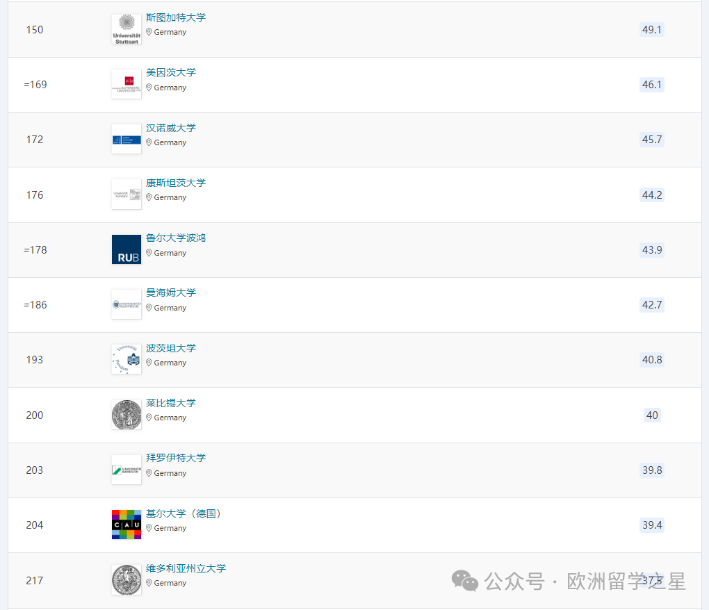 德国则有53所高校入围,其中16所进入前100名,排名最高的是位列第十一名的慕尼黑工业大学。