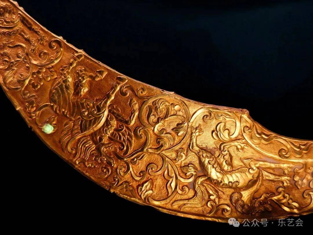 展品类型涵盖首饰、腰带饰件、车马饰、礼仪用具等,造型各异、工艺精湛。其中,公元前15世纪-13世纪的喇叭口金饰,见证了黄金工艺从欧亚大陆西端向东传的轨迹;战国至汉代的卷曲动物纹饰牌,呈现了草原游牧民族独特的“动物纹”艺术风格;唐代金饰则展现了丝绸之路多元文化交融的华丽风采;而辽宋时期的金带钩与头饰,则体现了中原与北方草原文化的深度融合。此外,展览还特别关注金器工艺技术的发展。